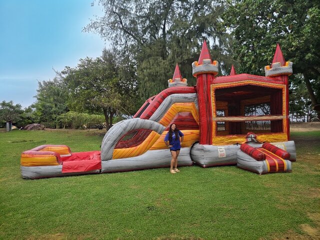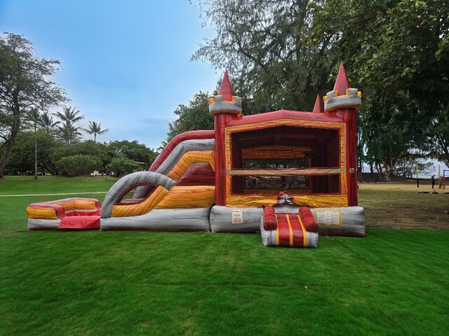 π‘οΈLucky Medieval Combo – Maui Water Slide Comboπ‘οΈDouble the lanes = double the smiles! The Lucky Medieval Combo (Dual Lane) brings the castle vibe, cool colors, and keeps kids moving and lines short. Riders race side-by-side into the splash zone for hours of safe, refreshing fun — perfect for birthdays, school/church events, and summer BBQs across Maui. ππ