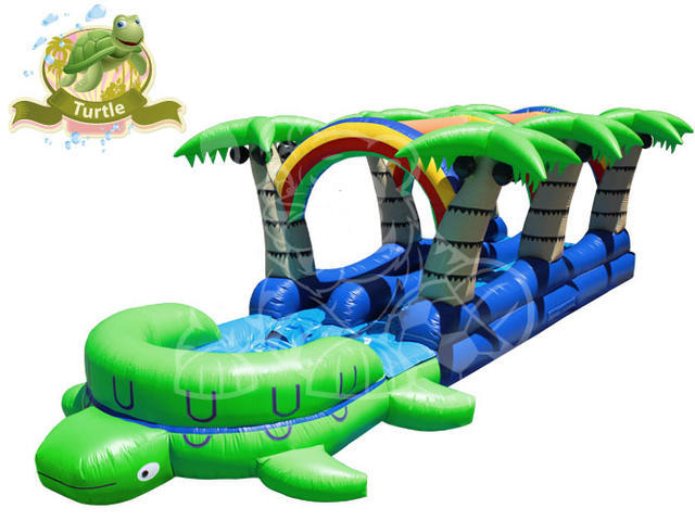 The Turtle Slip n' Slide is the ultimate water attraction for your Maui party. It is 36 feet long and features two lanes so that 2 people can race down to the Turtle splash pool. This attraction is great for both children & adults. What a great way to spend a hot day!